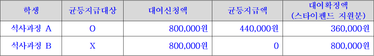 지원금을 상환함 (단, 균등지급대상* 학생연구자의 경우, 균등지급액분은 기관계정에서 지원함)