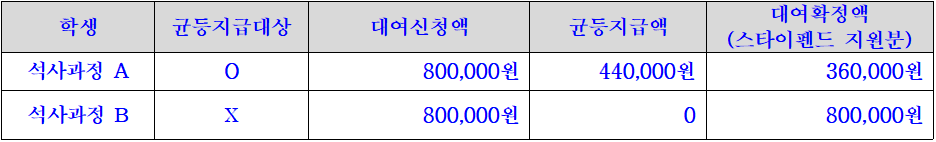 예시) A 석사과정생 인건비 지급액이 40만원인 경우, 대여금액: 40만원